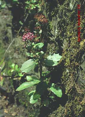 Auf dem Rückweg wurden vor allem Arten der Felsspalten demonstriert. Neben häufigeren Farnen kommt in Monschau auch die seltene Berg-Fetthenne vor (Hylotelephium vulgare [=Sedum fabaria]). Die Art wurde noch knospig angetroffen. Deshalb ist rechts ein Archivbild wiedergegeben.