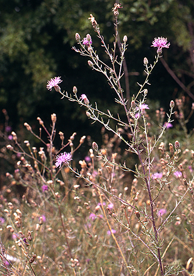 Für naturferne Biotope ist ein hoher Anteil an Neophyten typisch. Das interessanteste Beispiel ist die Rispen-Flockenblume (Centaurea stoebe) (unten), die sich seit wenigen Jahren auf der Hochfläche ausbreitet.