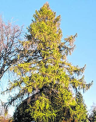 Zu einem goldenen Herbst gehört die Europäische Lärche (Larix decidua) aus der Familie der Kieferngewächse (Pinaceae) unbedingt dazu. Der in Deutschland zum Baum des Jahres 2012 gewählte Nadelbaum ist der einzige hierzulande, der vor dem Winter seine herbstlich goldgelb gefärbten Nadeln abwirft. Warum er dies tut, haben die Wissenschaftler noch nicht endgültig klären können. Der Abwurf der Blätter schützt die Lärche jedenfalls vor Verdunstungs- und Frostschäden, was ihr besonders in ihrem natürlichen Hauptverbreitungsgebiet, den Alpen, bis zu einer Höhe von 2400 Metern zu Gute kommt: Sie kann Fröste bis minus 40 Grad Celsius überstehen. Die Lärche besiedelt als sogenannter Pionierbaum Flächen, die durch Erdrutsche oder Lawinen entstehen. Mit ihren tiefgehenden, stark verzweigten Herzwurzeln ist sie sehr sturmfest. Wegen ihres hohen Lichtbedarfs meidet sie schattige Standorte und enge Nachbarschaft zu anderen Bäumen. Bei optimalen Standortbedingungen kann sie eine Höhe von 50 Metern und ein Alter von 600 700 Jahren erreichen. Im Schweizer Kanton Wallis gibt es Lärchen, die sogar 1250 Jahre alt sind und wohl schon miterlebt haben, wie Karl der Große 773 die Alpen überquert hat.