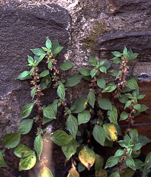 Für das Mauer-Glaskraut (Parietaria judaica) sind Weinbergsmauern dagegen der primäre Standort. Im Gegensatz zu den oben genannten Arten können die Mauern sogar verfugt sein. Winzige Ritzen reichen zum Leben aus.
