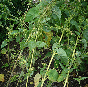 Dabei ist die Gartenmelde (Atriplex hortensis), wie Mangold und Spinat zur Familie der Gänsefußgewächse (Chenopodiaceae) gehörend, eine problemlos zu kultivierende Pflanze. Im Gegensatz zum Spinat, der längere Zeit im Rosettenstadium verweilt, wächst sie kontinuierlich in die Höhe und kann durchaus im freien Stand bis zu zwei Meter erreichen. Die schnellwüchsige, einjährige Pflanze kann vom Frühjahr bis in den Frühsommer ausgesät werden. Nach sechs bis acht Wochen ist die erste Ernte möglich. Entweder werden die jungen, zarten Pflänzchen ganz geschnitten oder die großen Blätter abgezupft. Sie haben ein mildes Aroma und können roh als Salat oder gedünstet als Gemüse gegessen oder als Suppe zubereitet werden. Lässt man bei der Ernte ein bis zwei Blattpaare stehen, treibt die Pflanze an den Blatt-achseln wieder aus und weitere Ernten der dreieckigen bis herzförmigen, bis zu 18 Zentimeter langen, leicht bitter schmeckenden Blätter sind im Sommer möglich. Will man eigene Samen ernten, sollte man die Melde blühen lassen: Aus den unscheinbaren grünen oder rotbraunen Blüten entwickeln sich im September/Oktober Samen mit kreisrunden, flachen Fruchthüllen.