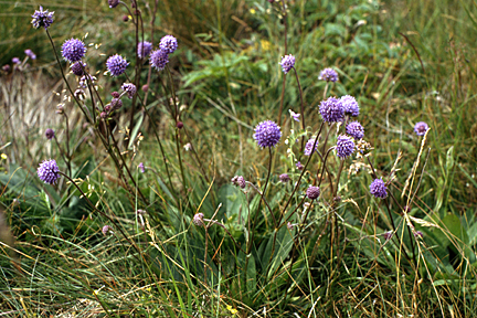 Jedes Jahr lobt die Loki Schmidt-Gesellschaft eine Blume des Jahres aus. In diesem Jahr ist es der Gewöhnliche Teufelsabbiss mit dem wissenschaftlichen Namen Succisa pratensis. Die Art gehört zur Familie der Kardengewächse (Dipsacaceae), die meistens viele irgendwie rötlich bis violette, kleine Blüten in Körbchen oder Köpfchen vereinigt haben und deshalb von Laien schon mal mit den echten Korbblütern verwechselt werden. Beim Teufelsabbiss sind die Köpfchen kugelrund, blauviolett gefärbt und etwa zwei Zentimeter dick. Die Pflanze wird maximal einen Meter hoch und blüht ab Ende Juni.