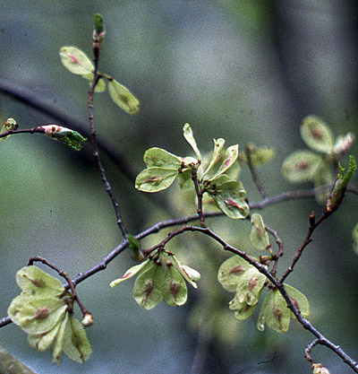 Kennzeichnend für Schluchtwälder: ein fruchtender Zweig der Berg-Ulme.