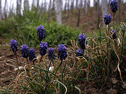 Bei Acker denkt man immer an Getreide, Rüben oder Kartoffeln. Ökologisch gehören aber auch Weingärten zu den Äckern. Genauer handelt es sich um Hackfruchtäcker (wie bei Rüben und Kartoffeln), weil dort zumindest früher mehrfach im Jahr der Boden gehackt wurde und dadurch unerwünschte Wildkräuter untergegraben wurden. In diesem Sinne gehörten Weinberge schon immer zu den intensivst bearbeiteten Äckern. Wissenschaftlich heißt die Begleitflora von Weinbergen Geranio-Allietum vinealis. Der erste Namensteil bezieht sich auf den Rundblättrigen Storchschnabel (Geranium rotundifolium). Den gibt es auch heute noch bis in die nördlichsten Weinbaugebiete an Ahr und Mittelrhein. Die kleinblütige Art ist allerdings so unscheinbar, dass sie von Laien wohl kaum von viel häufigeren, ähnlichen Storchschnabel-Arten unterschieden wird. Der zweite Namensteil bezieht sich auf den Weinbergs-Lauch (Allium vineale). Die Namensgebung ist nicht so glücklich, weil diese Lauch-Art auch an ganz anderen Standorten vorkommen kann. Bezeichnend ist allerdings, dass für dieses Biotop Zwiebelpflanzen typisch sind, die oft auch sehr früh blühen.
