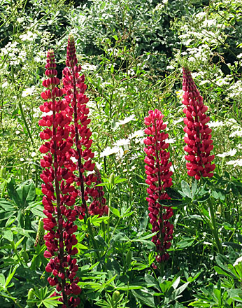 Fährt man entlang der Autobahn, fallen dort, wo infolge von Baumaßnahmen neue Böschungen entstehen, von Mai bis Juli große blau-violette Blütenstände ins Auge. Sie gehören zur Wolfsbohne, besser bekannt unter dem Namen Lupine. Sie ist eine Rohboden-Pionierpflanze, die zwar durchlässigen, humusreichen, leicht sauren Boden bevorzugt, aber auch auf sonnigen bis halbschattigen Standorten mit magerer Erde gedeihen kann. Dies gelingt ihr mit Hilfe der Knöllchenbakterien an ihren Wurzeln, die Stickstoff aus der Luft fixieren können und zu pflanzenverfügbaren Stickstoffverbindungen umwandeln. Wegen dieser Eigenschaft wird sie gerne zur Bodenverbesserung angebaut, mit dem Unterpflügen der Pflanzen wird der Boden mit Stickstoff angereichert. Zugleich besitzt sie eine bis zu 1,50 m tiefe Pfahlwurzel, die der Bodenbefestigung dient. Im rheinischen Braunkohlenrevier wird sie daher bei der Rekultivierung und dem Begrünen von Abraumhalden ausgesät.