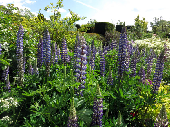 Die Vielblättrige Lupine kam zu Beginn des 19. Jhs. von Nordamerika nach Europa und trat hier ihren Siegeszug in unsere Gärten an. Man findet sie auch verwildert auf Waldlichtungen und an Waldrändern. George Russell, ein englischer Gärtner, züchtete Anfang des 20. Jhs. die ersten „modernen“ Lupinen: Sie sollten mehrjährig und winterhart sein und dicht gefüllte Blütenstände mit attraktiven Farben haben. So entstand eine Aufsehen-erregende Kollektion, die Russell-Hybriden. Die englische Staudengärtnerin Sarah Conibaer hat Ende der 1990er Jahre aus Saatgut der Russel-Linie die Westcountry-Lupinen gezüchtet, mit denen sie, wie Russell zuvor, bei der Chelsea Flower Show große Erfolge feiern konnte. Jedes Jahr kommen neue Sorten mit prächtigen Blütenständen auf den Markt mit so wohlklingenden Namen wie „Cashmere Cream“ (cremefarben), „Polar Princess“ (reinweiß), „Purple Swirl“ (hellviolett marmoriert), „Jupiter“ (zweifarbig violett-weiß) oder die purpurfarbene „Masterpiece“, die 2012 zum 60. Thronjubiläum von Queen Elizabeth die Barke schmückte, mit der sie auf der Themse fuhr.