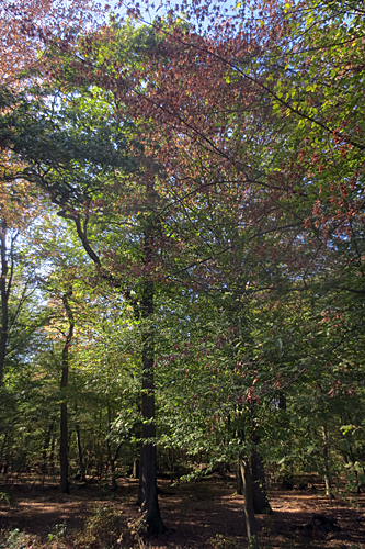 Blick in den verbliebenen Bürgewald mit Hainbuchen (Im Vordergrund) und Eichen.
