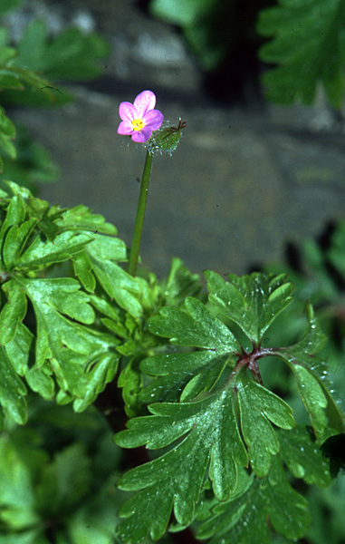 Der Purpur-Storchschnabel unterscheidet sich vom allgegenwärtigen Stinkenden Storchschnabel durch die kleineren Blüten mit gelben Staubgefäßen im Zentrum.