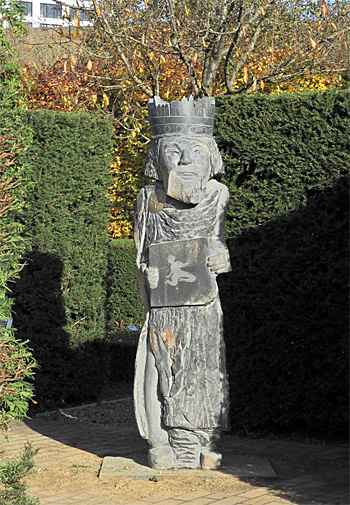 Seit Oktober steht im Garten eine Skulptur Karls des Großen, die der Künstler Alfred Mevissen aus Alsdorf aus einer Basaltsäule geschaffen hat. Wir sind darüber sehr glücklich, denn es dokumentiert die Verbindung von Natur und Kultur, wofür der Freundeskreis steht. Die Statue Kaiser Karls ist Ausgangspunkt und Teil eines länderverbindenden Skulpturenpfads (www.art-moves-europe.eu), an dem viele Künstler aus Europa beteiligt sind.