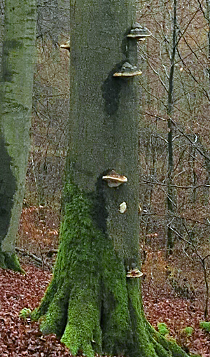 Abgestorbene Rotbuche mit Zunderschwamm