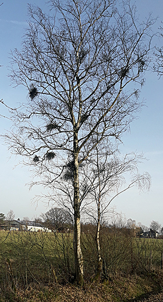 Hexenbesen sind Wachstumsstörungen an Bäumen. Dabei entstehen an einer Stelle zahlreiche Seitenzweige in dichter, wirrer Anordnung. Das kann verschiedene Ursachen haben. Z.B. bei Birken ist es der Pilz Taphrina betulina.