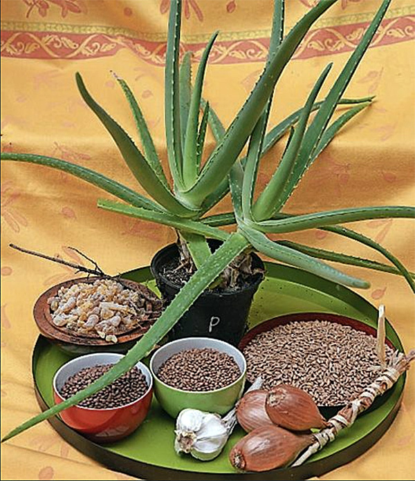 Aloe, Hartweizen, Linsen, Allium und Myrrhe.