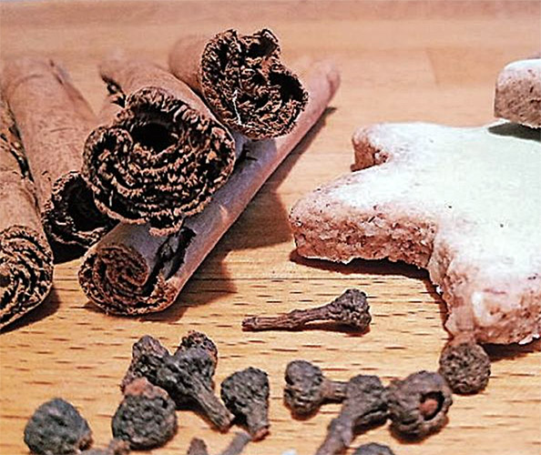 In der Weihnachtsbäckerei: Ceylonzimtstangen, Zimtblüten und Zimtsterne.