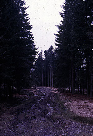 Ein trostloser Fichtenforst in der Eifel, durch dem sich auch noch die „Panzer“ der Holzabfuhr durchgepflügt haben.Wenn man dann zunehmend davon hören und lesen kann, dass der „Wald“ zukunftsfähig gemacht werden soll, indem man Exoten anpflanzt wie Douglasien, Rot-Eichen usw., die besser mit den neuen Klimabedingungen zurechtkommen, sind natürlich reine Wirtschaftswälder gemeint. In naturnahen Wäldern sind solche Eingriffe unnötig und kontraproduktiv. Es wird vielleicht Verschiebungen geben. Die Buche zieht sich möglicherweise auf höhere Mittelgebirgslagen zurück, dafür breiten sich Eichen- und Linden-Arten weiter aus. Das kriegt die Natur selbst hin; dafür braucht es keinen menschlichen Eingriff.