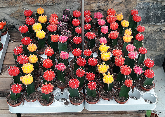 In der Natur sind Mutanten, die kein Blattgrün produzieren können, nicht lebensfähig. Bei manchen Kakteen hat der Mensch da nachgeholfen, indem er sie auf andere, gesunde Kakteen aufgepfropft hat. Die chlorophyllfreien Pflanzen schmarotzen praktisch auf ihrer Unterlage. Sinn der Übung ist, dass wie beim Herbstlaub die sonst von Chlorophyll überdeckten Farben sichtbar werden und man gelbe, orange oder rote Formen bekommt. Dazu werden u.a. Arten der Gattungen Astrophytum und Gymnocalycium benutzt. Als Unterlage dient meist die Gliederkaktee Hylocereus trigonus.