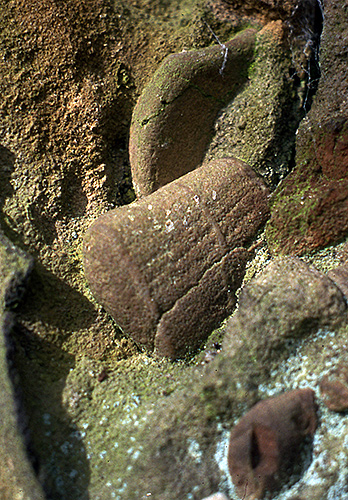 Fossilien sind eher selten, weil die Bedingungen dafür im bewegten Flusssediment schlecht sind. Nur an ruhigen Stellen, an denen Pflanzenreste schnell von weiterem Sand zugedeckt werden und länger so liegen, ist dies möglich. Ein typische Beispiel sind Schachtelhalme, die wohl im sumpfigen Uferbereich gewachsen sind.