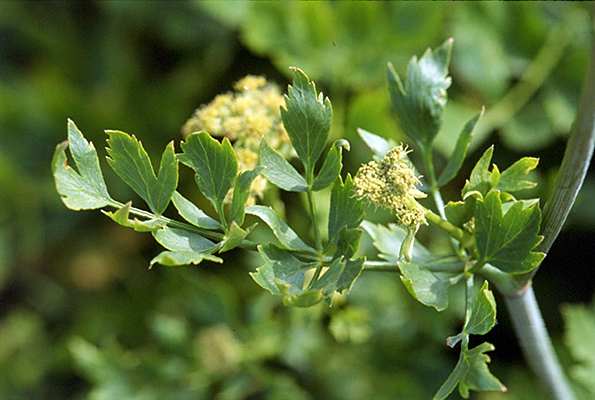 Der ursprünglich aus dem Iran oder Afghanistan stammende Liebstöckel ist eine ausdauernde Pflanze aus der Familie der Doldenblütler (Apiaceae), die bis zweieinhalb Meter hoch werden und eine Breite von einem Meter erreichen kann, wenn sie an einem sonnigen bis halbschattigen Standort mit feuchtem, nährstoffreichem Boden wächst. Aus dem fleischigen Wurzelstock treibt im Frühjahr ein feingerippter, hohler Stängel mit langen, dunkelgrünen, glänzenden, zwei- bis dreifach gefiederten Blättern. Von Juni bis August erscheinen fast handgroße, vielstrahlige, doppeldoldige Blütenstände mit kleinen gelblichen, nektarreichen Blüten, eine wertvolle Bienenweide im Hochsommer. Im Spätsommer entwickeln sich daraus kleine elliptische, braune, gerippte Samen.