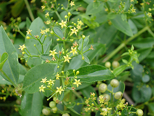 Krapp (Rubia tinctorum), auch Färberröte, Türkischrot oder Färber-Wurtz genannt, ist eine ausdauernde, mehrjährige, frostharte Pflanze aus der Familie der Rötegewächse (Rubiaceae), der auf tiefgründigen, sandigen, nährstoffreichen Lehmböden in warmen Regionen am besten wächst. Die bis achtzig Zentimeter hohen, vierkantigen Stängel und die quirlständig stehenden, lanzettlichen Blätter fühlen sich kratzig an, weil sie mit winzigen, rückwärts gerichteten Stachelzähnchen besetzt sind. Darauf nimmt wohl der Name „Krapp“ Bezug, abgeleitet vom mittelhochdeutschen „Krap(f)e“ für „Haken“. In den Blattachseln erscheinen von Juni bis August kleine grünlich-gelbe Blüten mit fünf Blütenblättern. Im September reifen die erbsengroßen, schwarzen Steinbeeren heran. Die Wurzeln sind zwanzig bis dreißig Zentimeter lang und etwa zwölf Zentimeter dick. In der Volksmedizin wurde die Wurzel früher als harntreibendes Mittel, bei Nieren- und Blasensteinen und bei Gelbsucht eingesetzt.