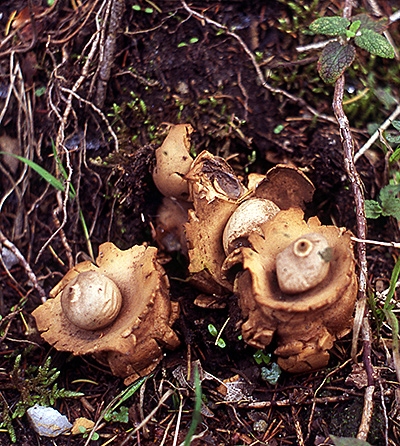 Beim Halskrausen-Erdstern (Foto) ist die Hülle zusätzlich differenziert in das wie üblich kragenförmige Exoperidium und eine zusätzliche Hülle darüber. Dieses Mesoperidium reißt nicht so stark auf und bildet eher eine Art Schale oder Kelch.